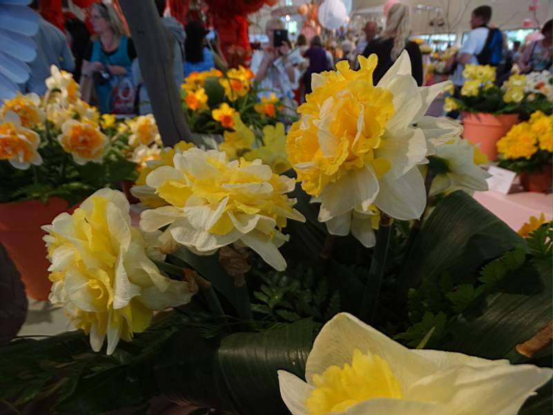 В павильоне Нассау букеты, композиции. Преимущественно из нарциссов.