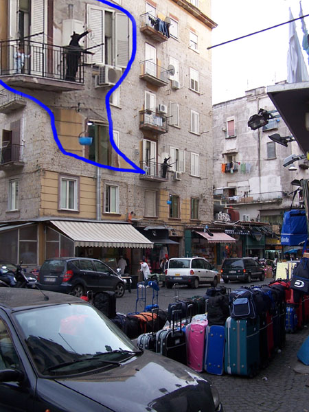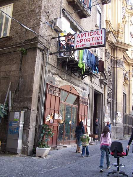 Достаточно распространённый в Неаполе способ закупки: не покидая дома - просто спускается ведро или корзина с деньгами, названиями необходимых продуктов перекрикиваются уличные сирены и готовая потребительская корзина затаскивается наверх. Основополагающий принцип незыблем: всего, что может называться "работой" желательно избегать.