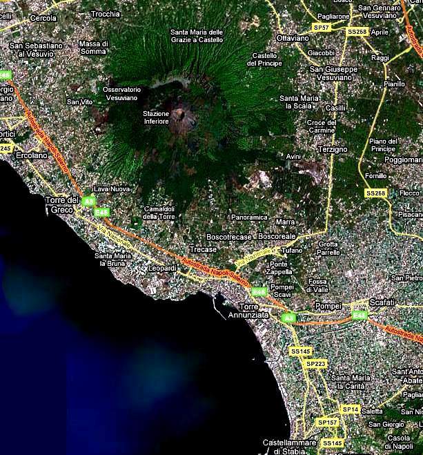 Вид со спутника на Везувий и окресности. С Google.map