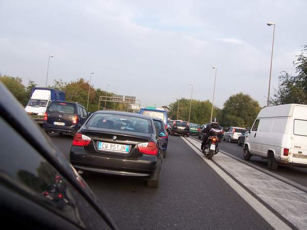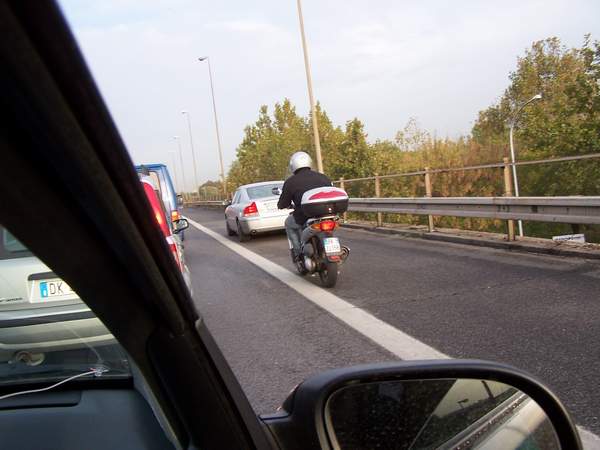 А эту полосу раздела специально сделали широкой, чтобы всякие козлы её отчётливо видели и не перестраивались тут, где нельзя. Такой широкой сделали, что теперь на ней с легонца умещается ещё одна полоса для мотоциклов и велосипедов.