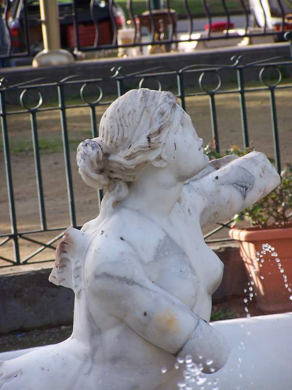 Обращает на себя внимание отсутствие традиционных деталей на лицах статуй. Допустить их одновременное отпадание у всех статуй, было-бы слишком нереалистично, а предположение, что такой вид соответствует первоначальному замыслу скульптора, к примеру как месть натурщице, общение с которой имело для мастера неприятные последствия, кажется мне слишком печальным. Наиболее понятная мне мотивация (принимая, как я уже упоминал, что итальянский, а особенно неаполитанский менталитет - наиболее близок к русскому. Впрочем, там и Словения недалеко...) рисует образ обычного средненького неаполитанца, вышедшего из дому тёплым неапольским вечером, специально чтобы над кем-нибудь надругаться. Но, поскольку он всё-таки цивилизованный европеец, а не какой-нибудь питерский скихнед, то вооружается он добротным зубилом и молотком и идёт мочить статуи, а не сограждан.